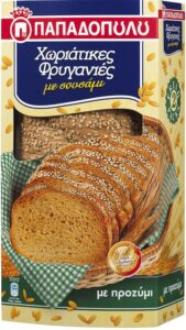 Χωριάτικες Φρυγανιές με σουσάμι, με τη μοναδική συνταγή Παπαδοπούλου. Όλη η νοστιμιά της παράδοσης σας συνοδεύει καθημερινά! Με σεβασμό στην παραδοσιακή τέχνη της αρτοποιίας. Η πλούσια γεύση που αναδεικνύουν οι σπόροι σουσαμιού σε συνδυασμό με το προζύμι δίνουν στις Χωριάτικες Φρυγανιές Παπαδοπούλου με Σουσάμι την εξαιρετική, ξεχωριστή, πλούσια γεύση τους.