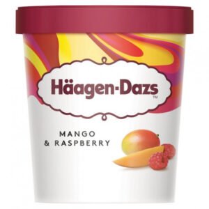 Mango ice cream and caramel syrup boiled in white chocolate and pieces of smoke